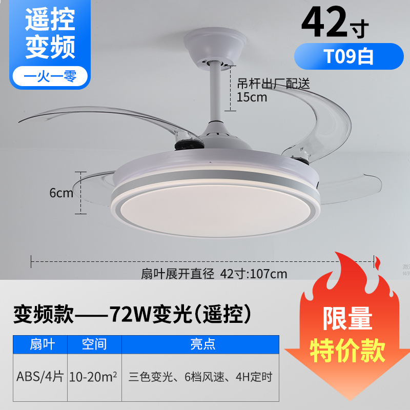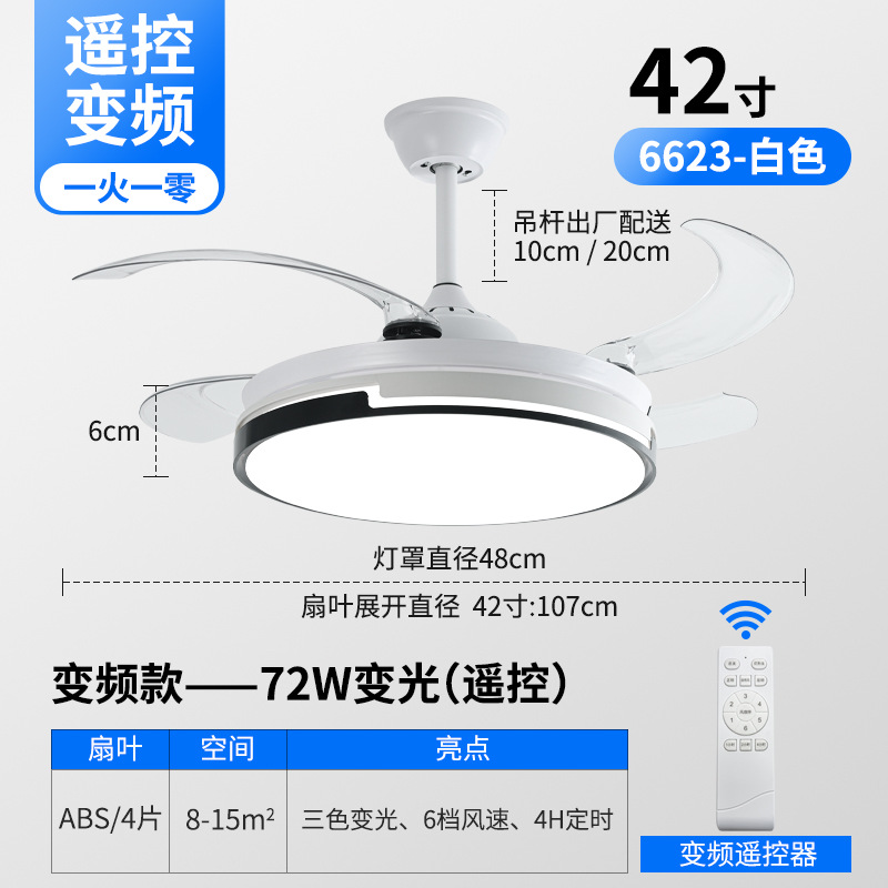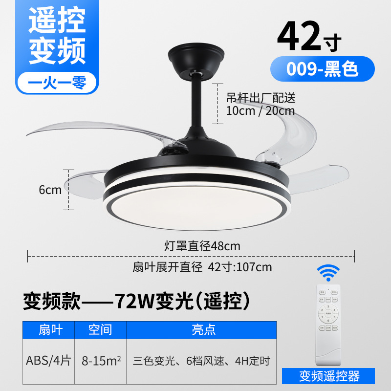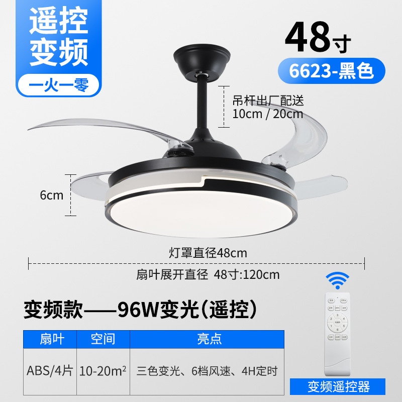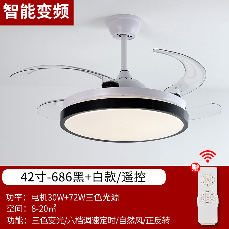 Invisible fan lamp Zhongshan factory dining room lamp living room ceiling fan lamp variable frequency 48-inch high wind silent lamp