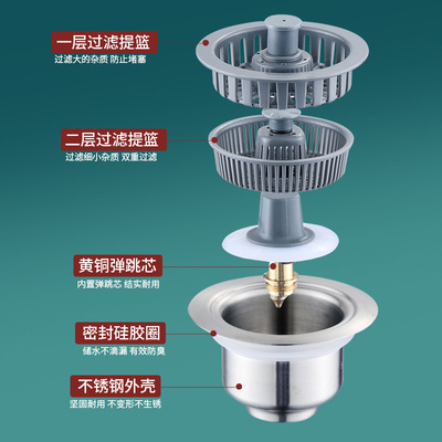 Specifications: 304 vegetable basin bouncing core second generation (double-layer filter copper core)