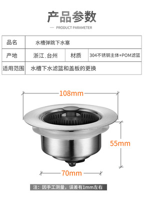 Specifications: 304 vegetable basin bouncing core first generation English version