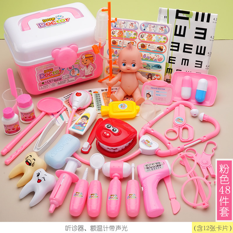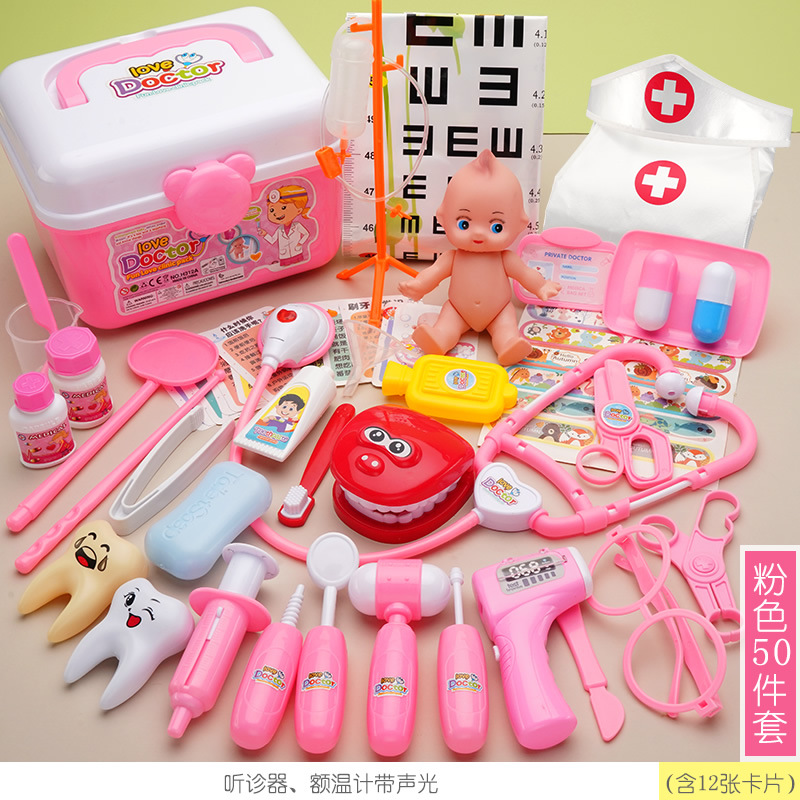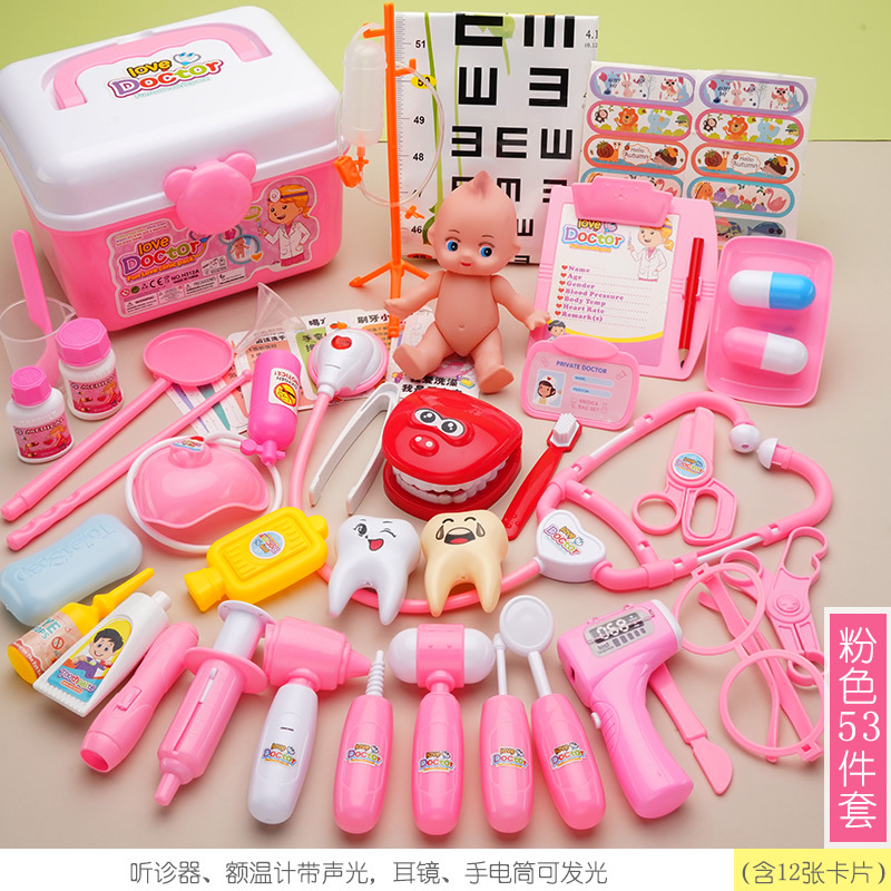 粉色收納盒-42件套【含1燈光+娃娃+牙模+病床】