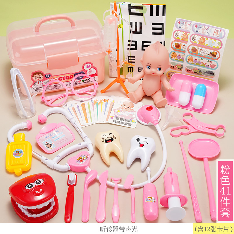 粉色收納盒-41件套【含1燈光+娃娃+牙模】