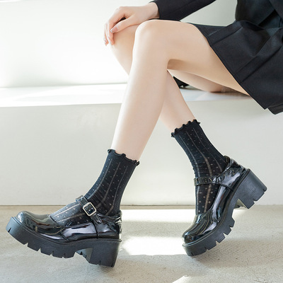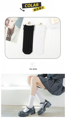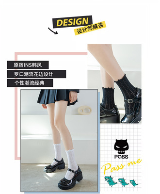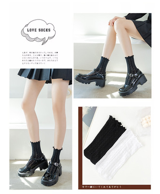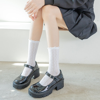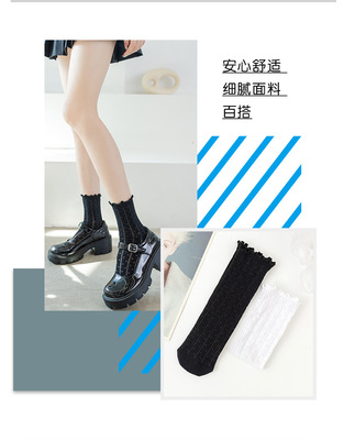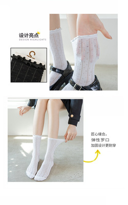 Women's Spring/Summer Japanese-style Instagram-worthy Mid-Calf Mesh Socks: Korean JK-Style Lace Socks in Black, White, and Pastel Floral Designs with Ruffled Edges—Perfect for Nightclub Dancing