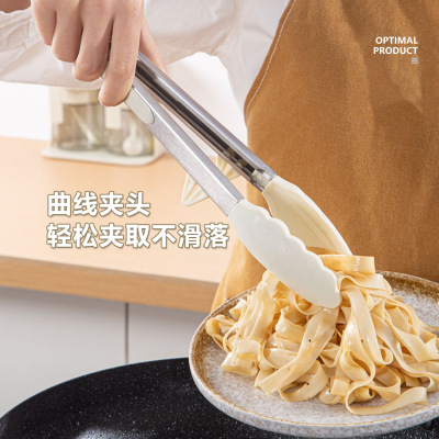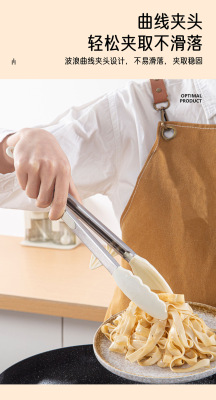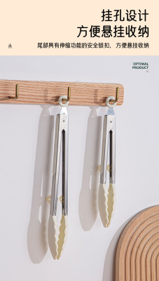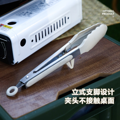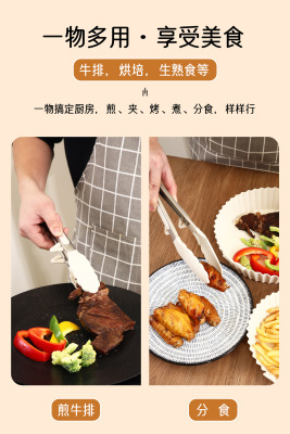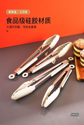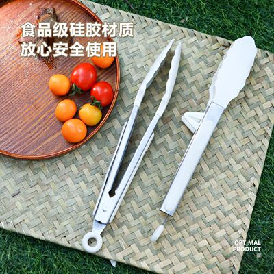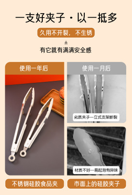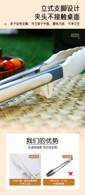 9寸12寸耐高溫防滑硅膠支架燒烤夾食物夾不鏽鋼防燙食品夾麵包夾