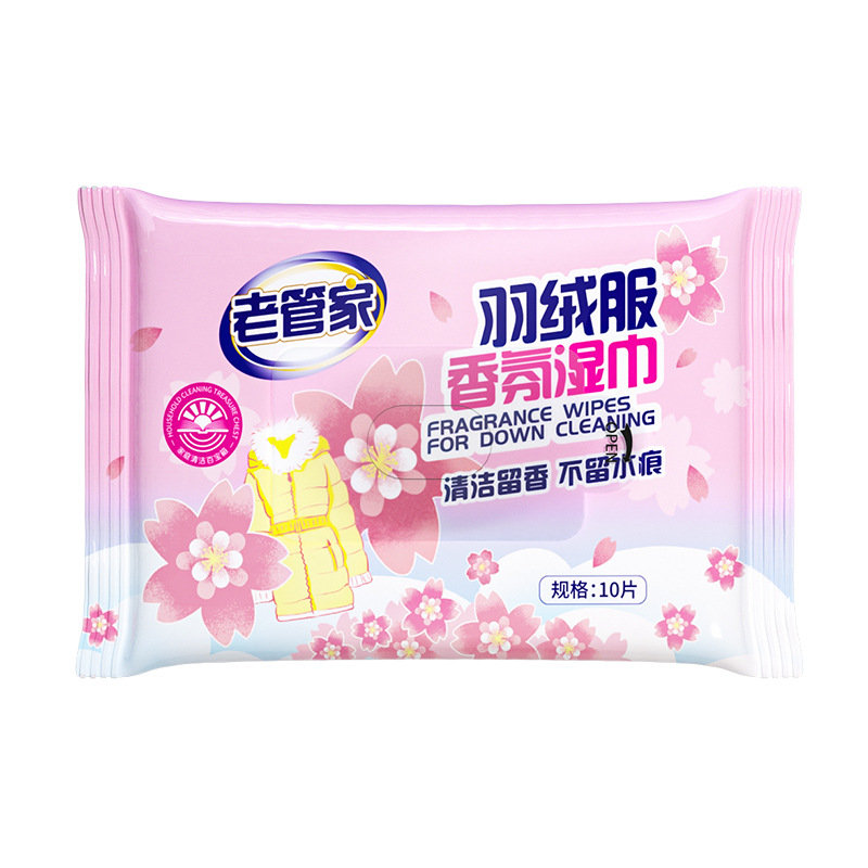 New product Lao Guanjia down jacket fragrance wipes scrub down jacket wipes no-clean dry cleaning clothes decontamination cleaning