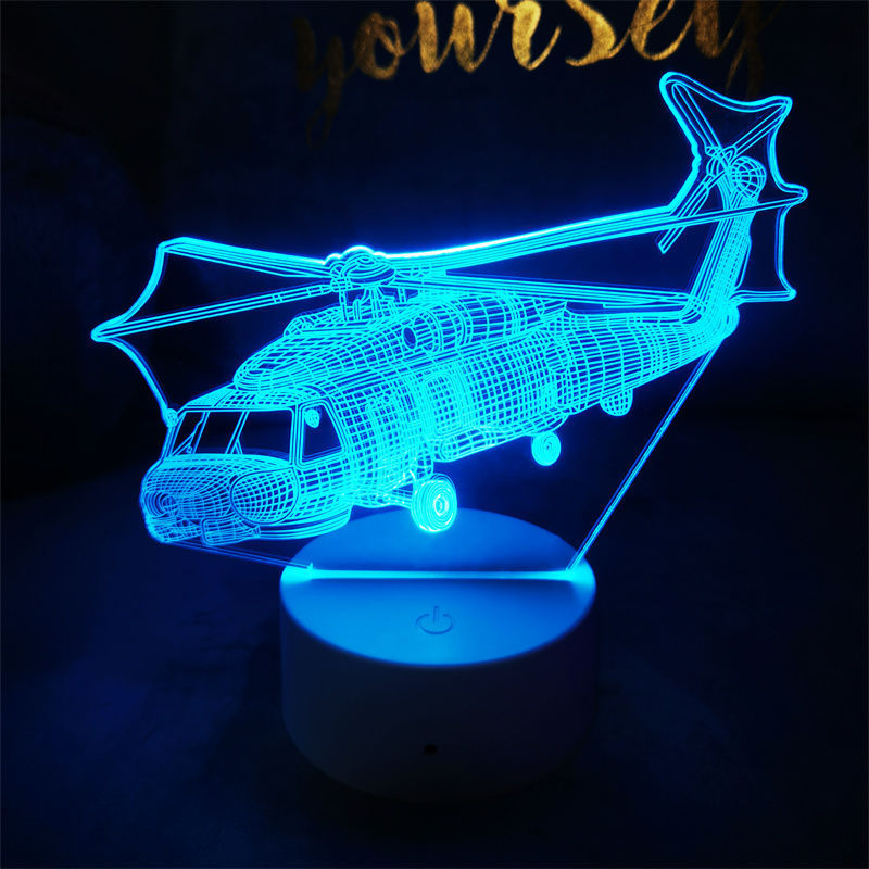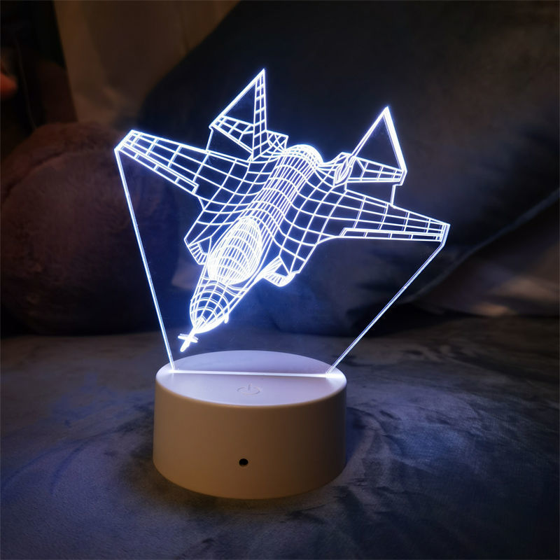 Cross-border special supply for aircraft fighter series 3D night light LED touch remote control three-color dynamic vision table lamp