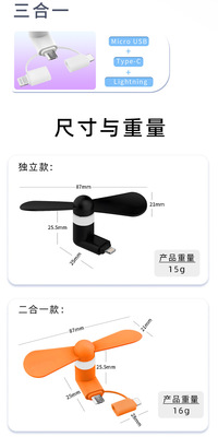 Suitable for Apple Android Type-C three-in-one mobile phone fan mini portable fan with printable logo