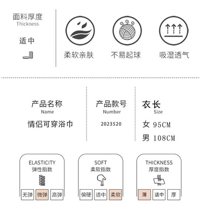 Couple bath towels for men and women, home hotel, absorbent and non-shedding, adult wearable bath towels, new bathrobes and nightgowns
