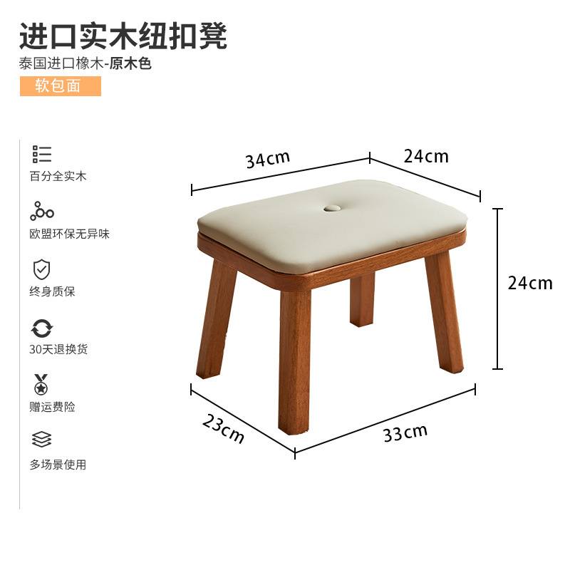 紐扣矮凳櫻桃木色實木面