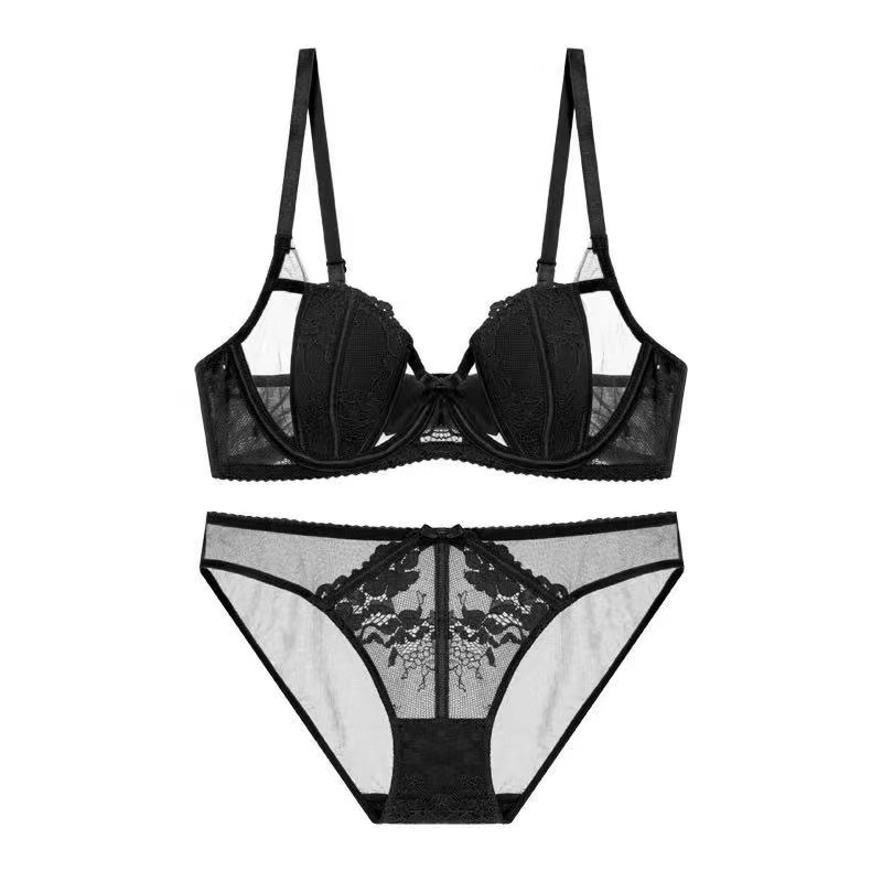 French Sexy Hollow Lace Bra Set Soft Wire Thin Breathable Underwear for Big Breasts and Smaller Women