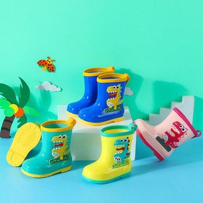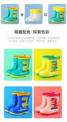 Children's cartoon rain boots, cute boys and girls, medium and large children's waterproof rain boots, primary school students' removable cotton sleeves, medium tube water shoes