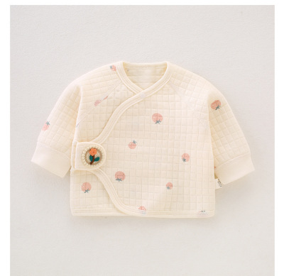 Newborn Spring and Autumn Warm Half-Back Bodysuit with Boneless Air Layer and Cotton, Thickening Monk Robe Baby Top for Firstborn