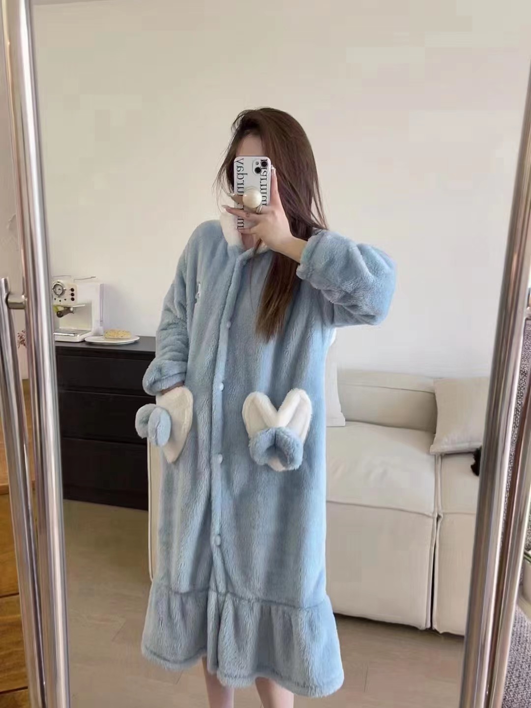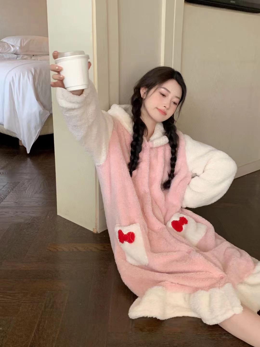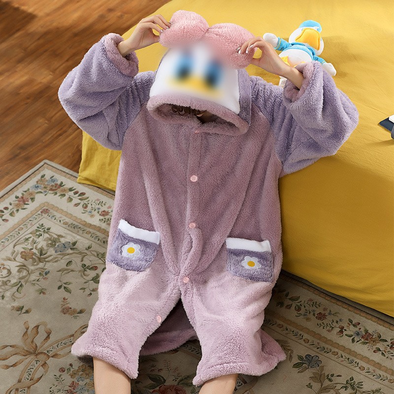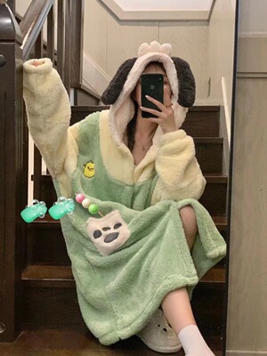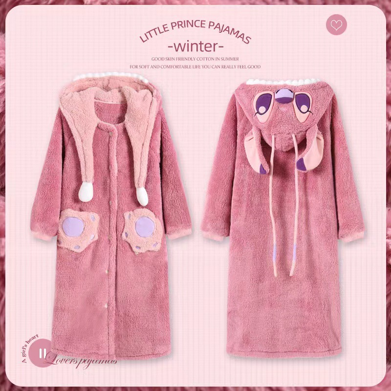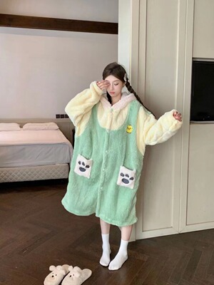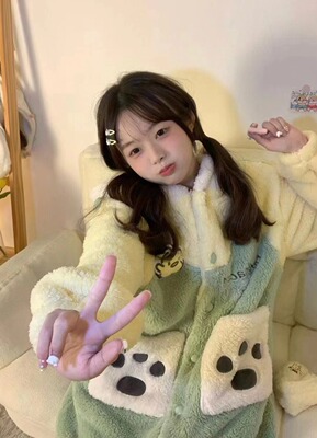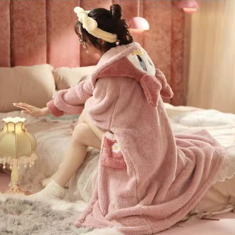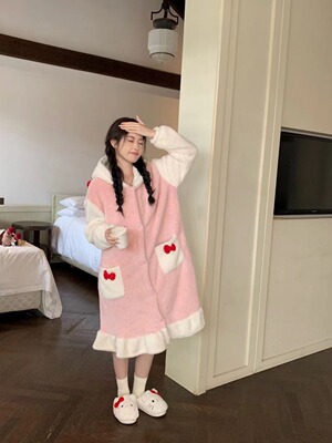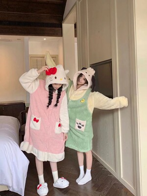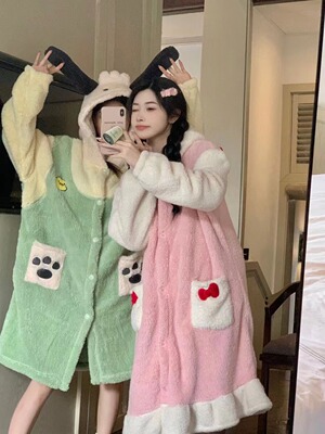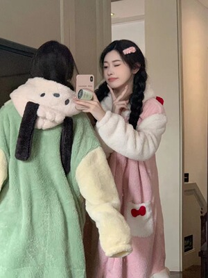 Girl's Pachak Dog KT Cat Coral Fleece Sleepwear 700g Female High Version Thickened Home Wear Sleep Robe Can Be Worn Out