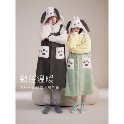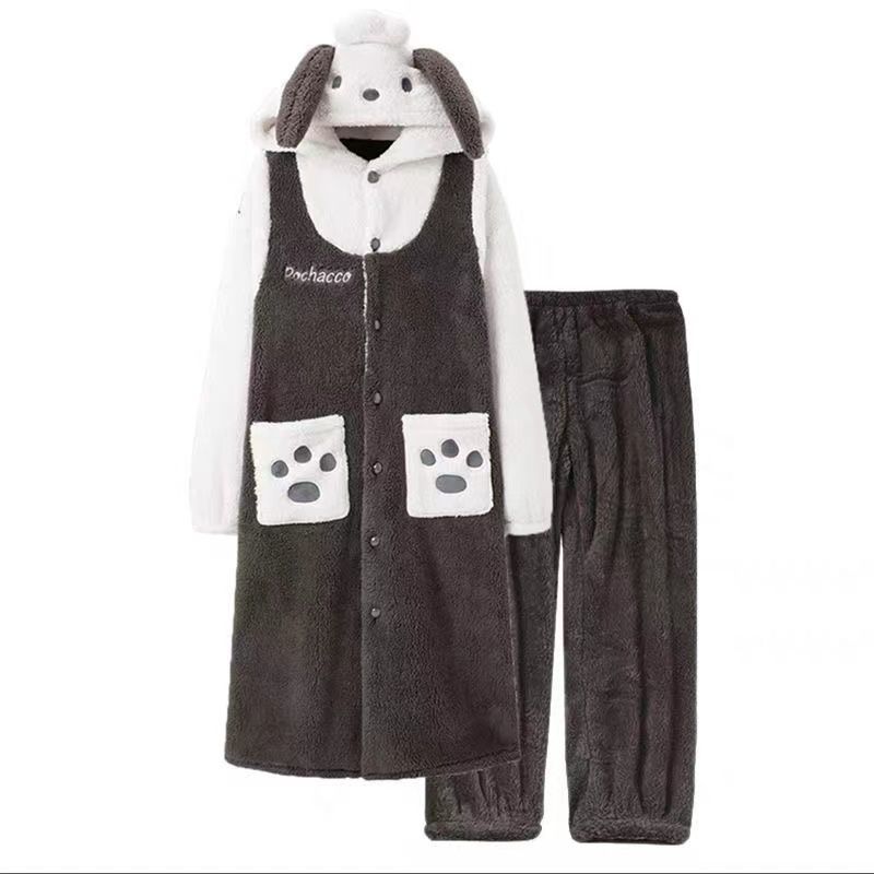 "Paracha Dog Thick Couple's Sleepwear Set for Women Autumn/Winter Coral Fleece Cute Girl Homecoming Dress Outwear Set"