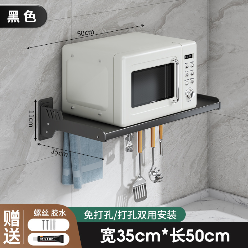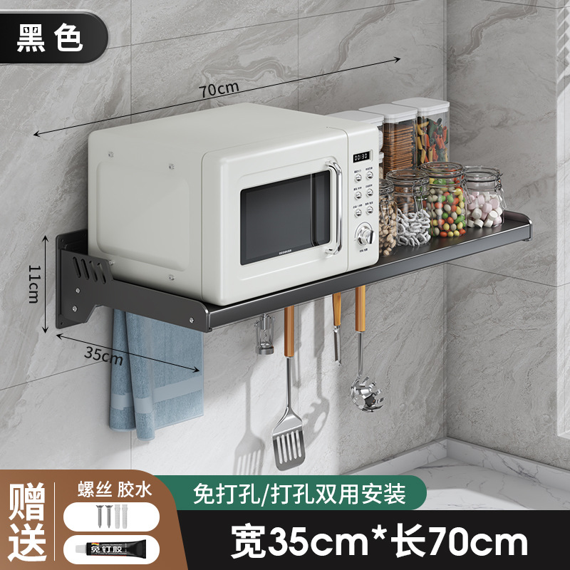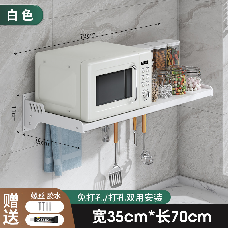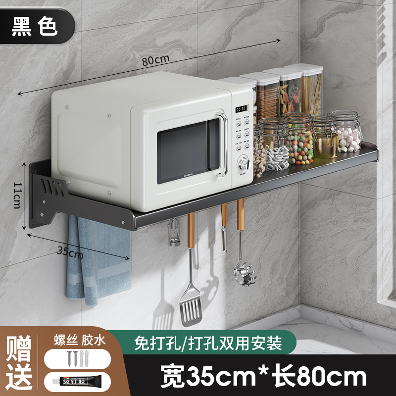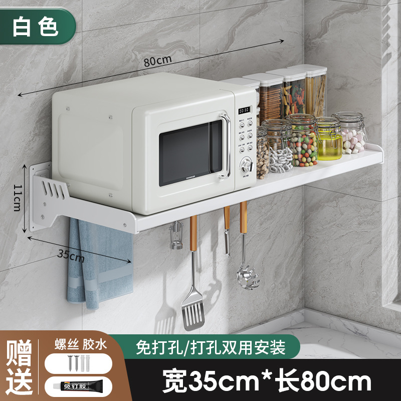 Kitchen microwave shelf without drilling, wall-mounted oven rack, household wall-mounted storage rack holder