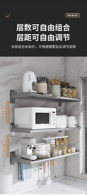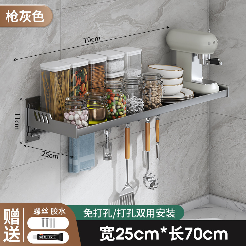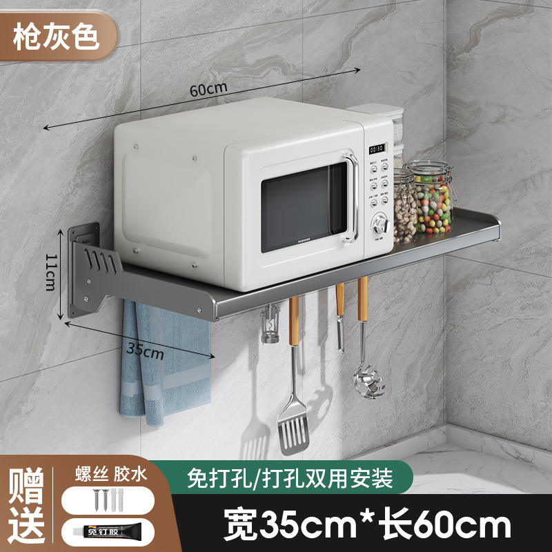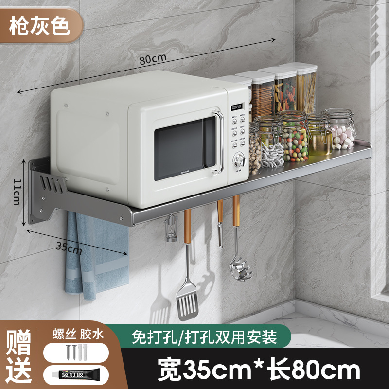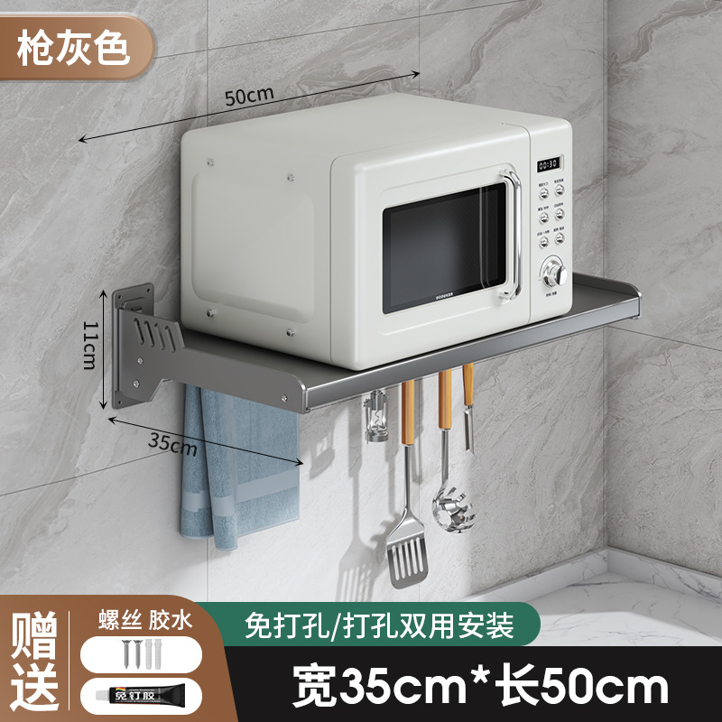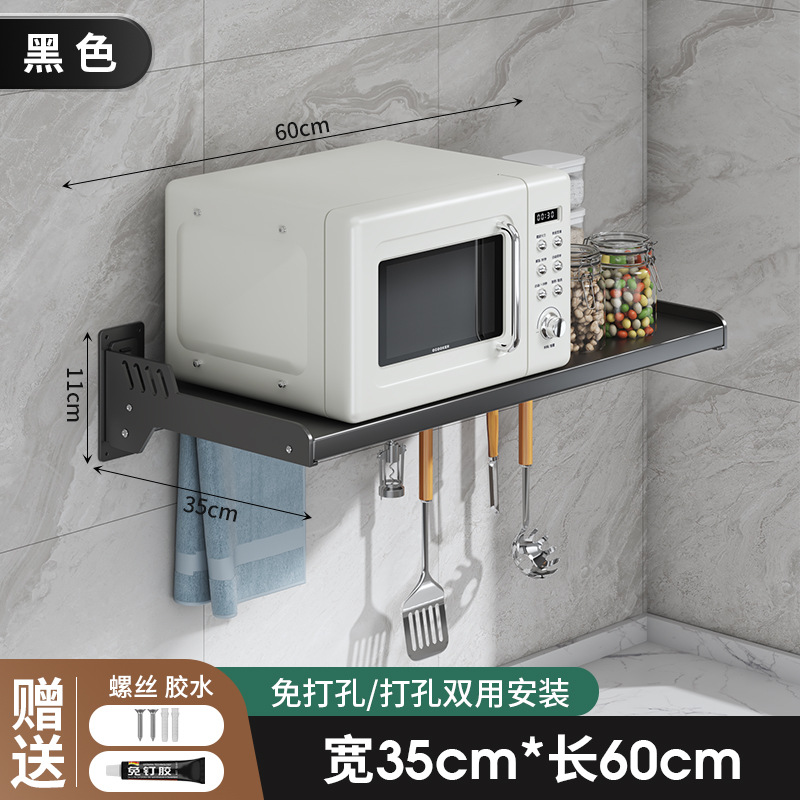 Kitchen microwave shelf without drilling, wall-mounted oven rack, household wall-mounted storage rack holder