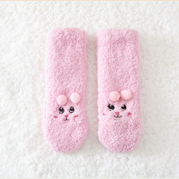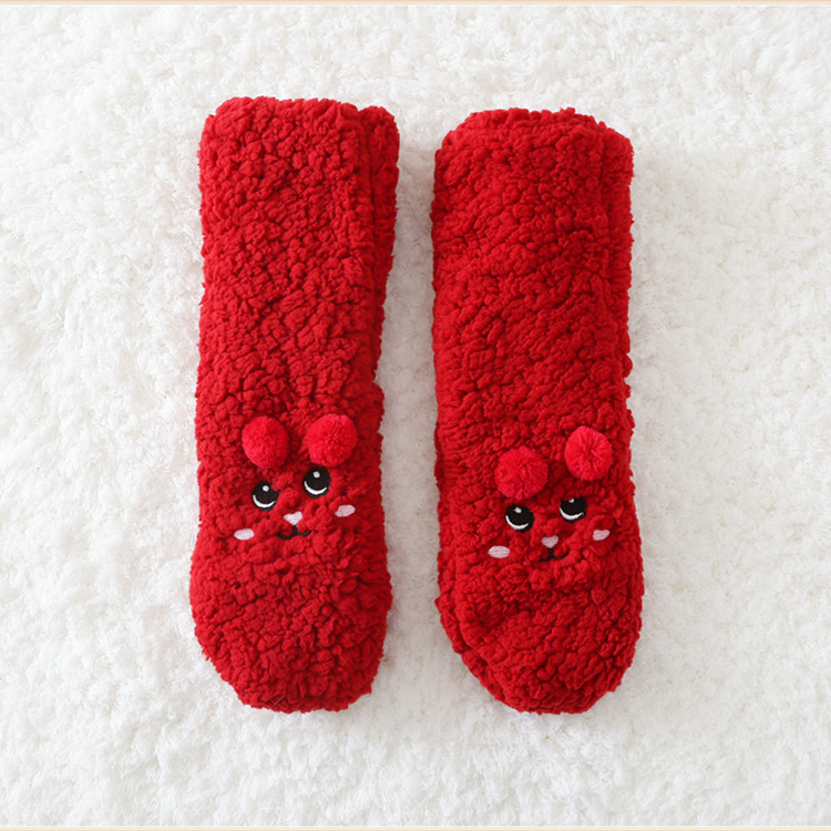 Winter foot warmer socks for women Japanese cute thickened plus velvet warm floor socks for postpartum period coral velvet sleep socks