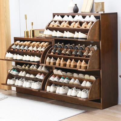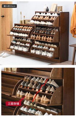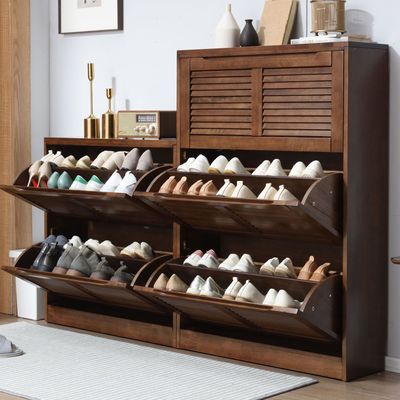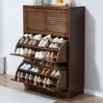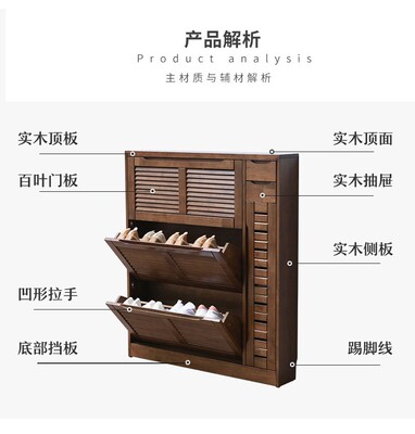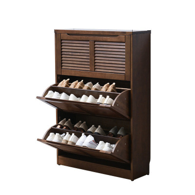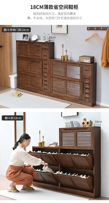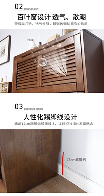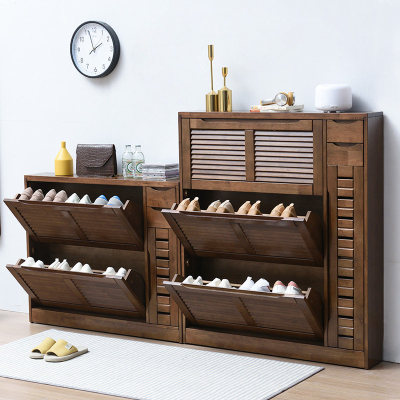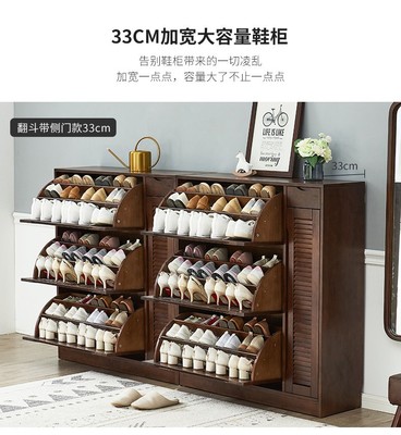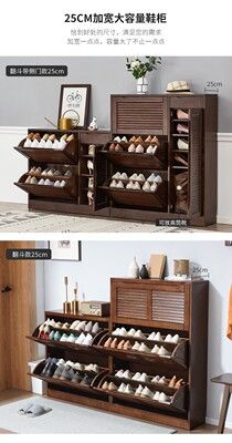 家逸實木鞋櫃大容量翻門玄關櫃北歐百葉門多層鞋架櫃