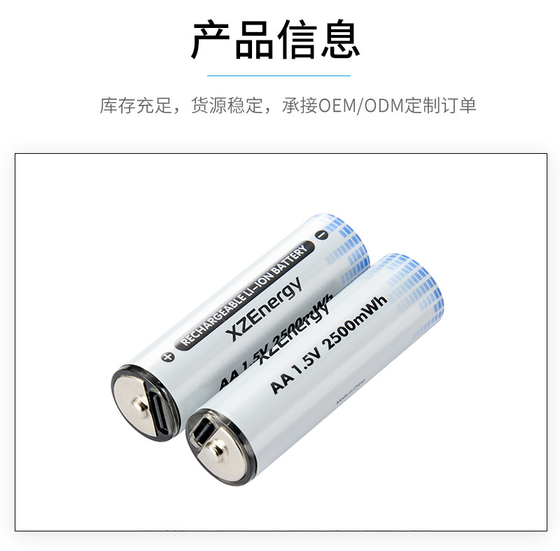 USB charging battery No. 5 AA factory rechargeable lithium battery high capacity current alternative to dry batteries 1.5V voltage