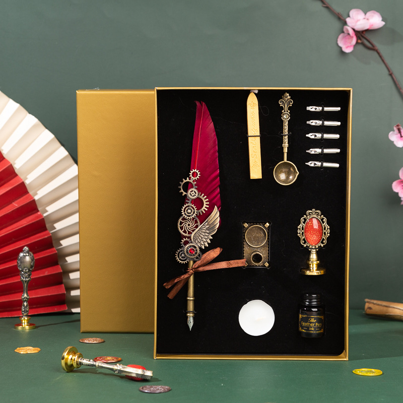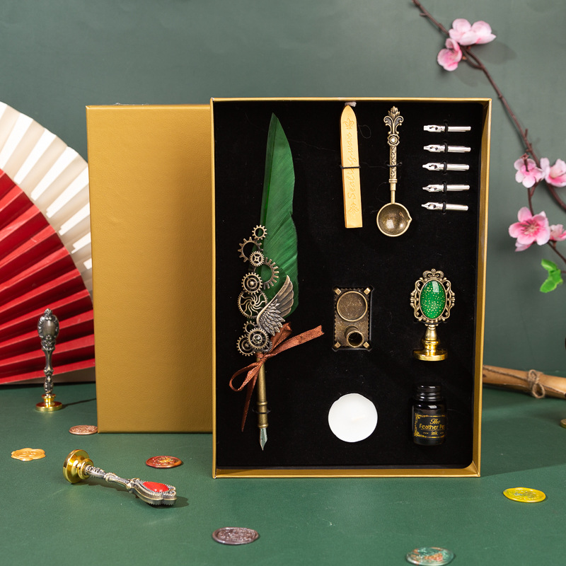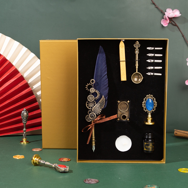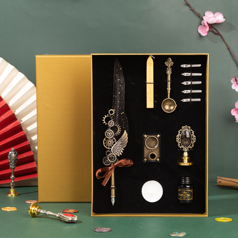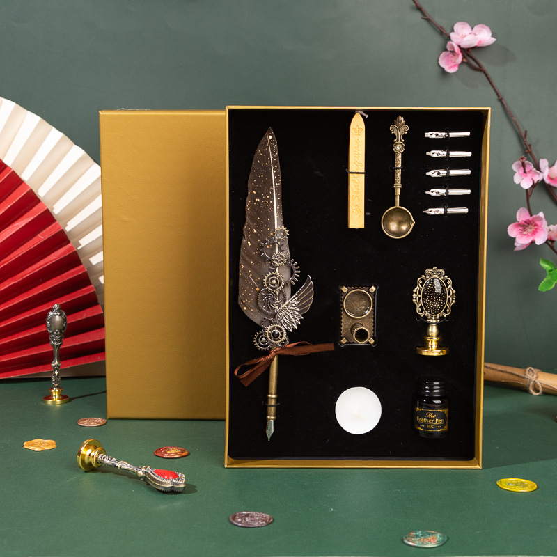 歐式復古羽毛筆 機械朋克風蘸水鋼筆多用途 灑金翅膀套裝