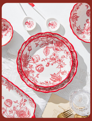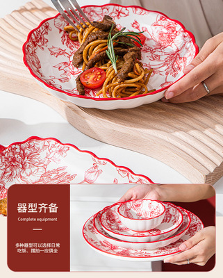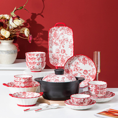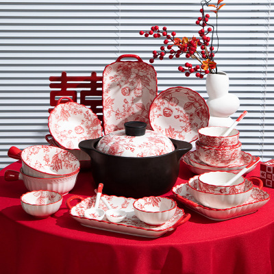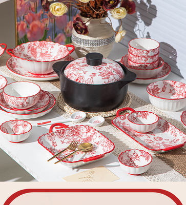 碗陶瓷新中式風家用批發碗碟盤組合家用陶瓷餐具飯碗盤子湯勺筷子