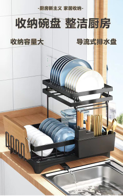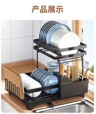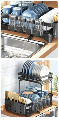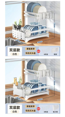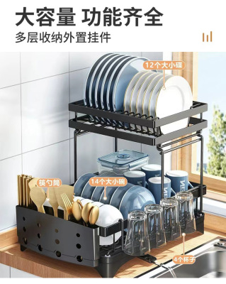 Kitchen double-layer dish drain rack bowl and chopsticks plate storage drain rack countertop sink drain bowl rack