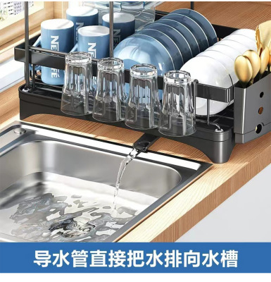 Number of layers (specifications): Card stackable double-layer dish rack model A (with three-compartment cups)* black