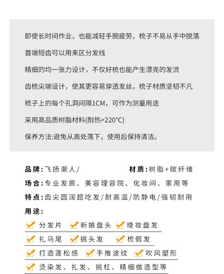 Professional hairdressing tool comb plastic pick comb makeup comb divided hair comb section comb hair comb styling comb evening comb