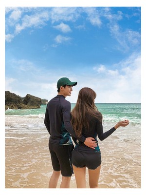 Wetsuit women's swimsuit split long-sleeved sun protection black jellyfish suit full body couple men's boxer trousers surfing suit