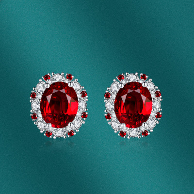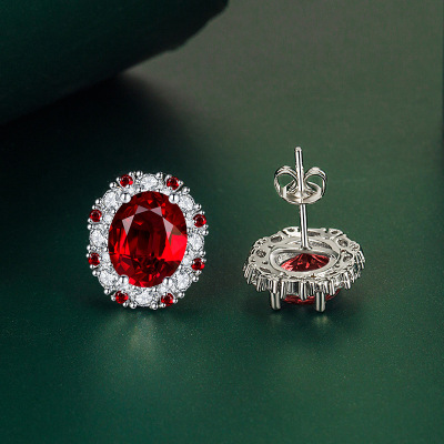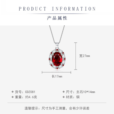 歐美奢華珠寶紅色鋯石彩寶套裝微鑲橢圓吊墜耳釘戒指新娘婚禮飾品
