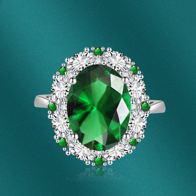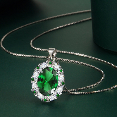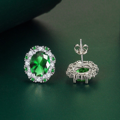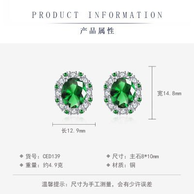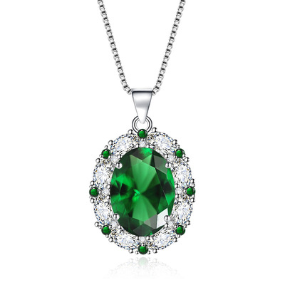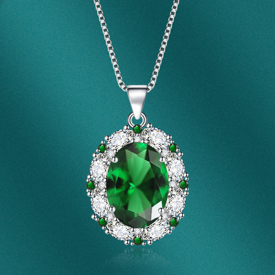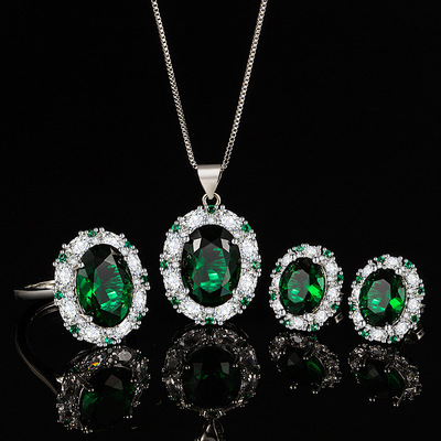 新款跨境氣質彩寶套裝鑲嵌綠寶石吊墜戒指耳釘三件套飾品一件代發