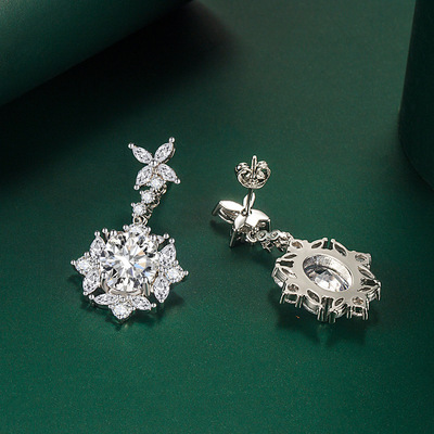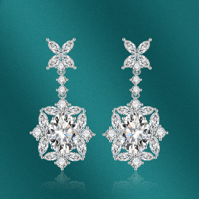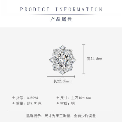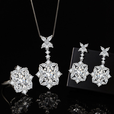 歐美奢華彩寶仿真白鋯石耳環吊墜戒指三件套高級首飾套裝一件代發