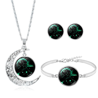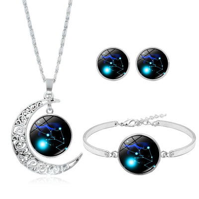 十二星座時光寶石項鍊套裝雙魚座獅子座白羊座手鍊耳環飾品三件套