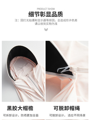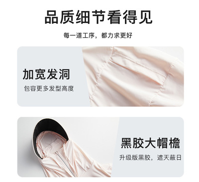 Women's Black Rubber Detachable Large Brim Ice Silk Cool Breathable UV Protection New Outdoor Sun Protection Suit for Men