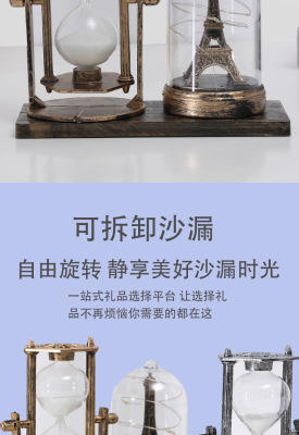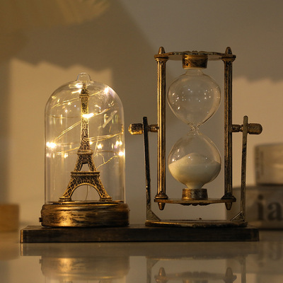 Lighted Iron Tower Sandglass Desk Ornament Student Gift for Boyfriend and Girlfriend Festival Gift Craft for Teacher and Children