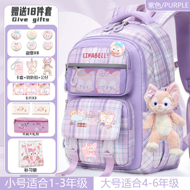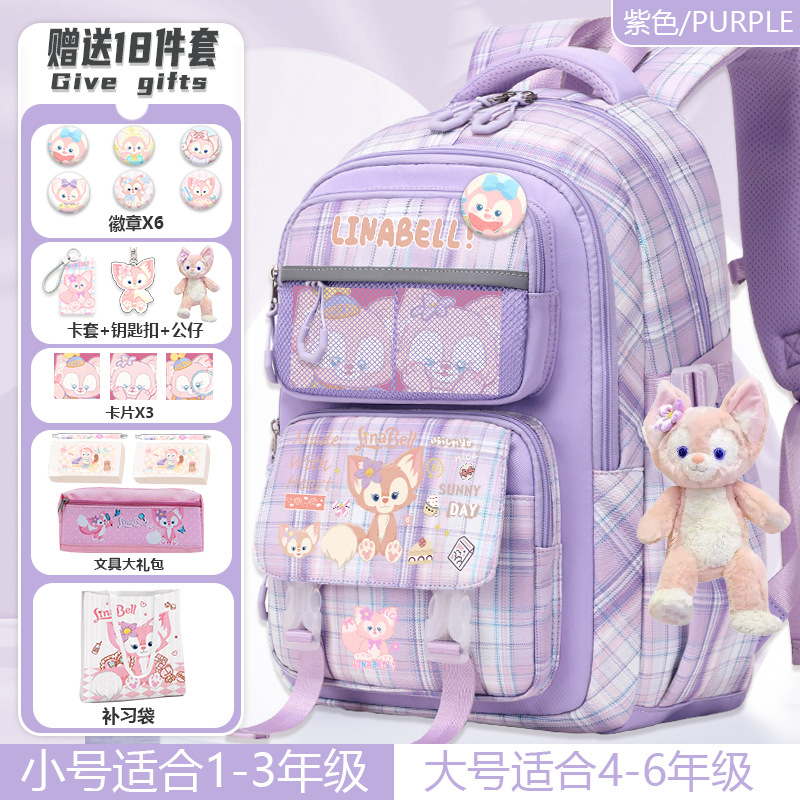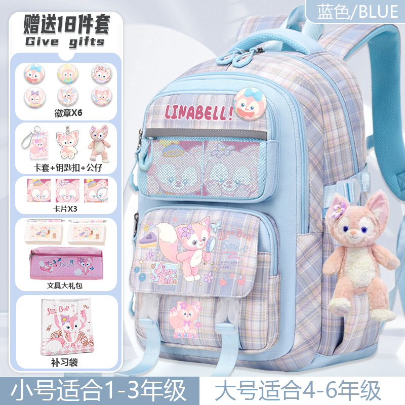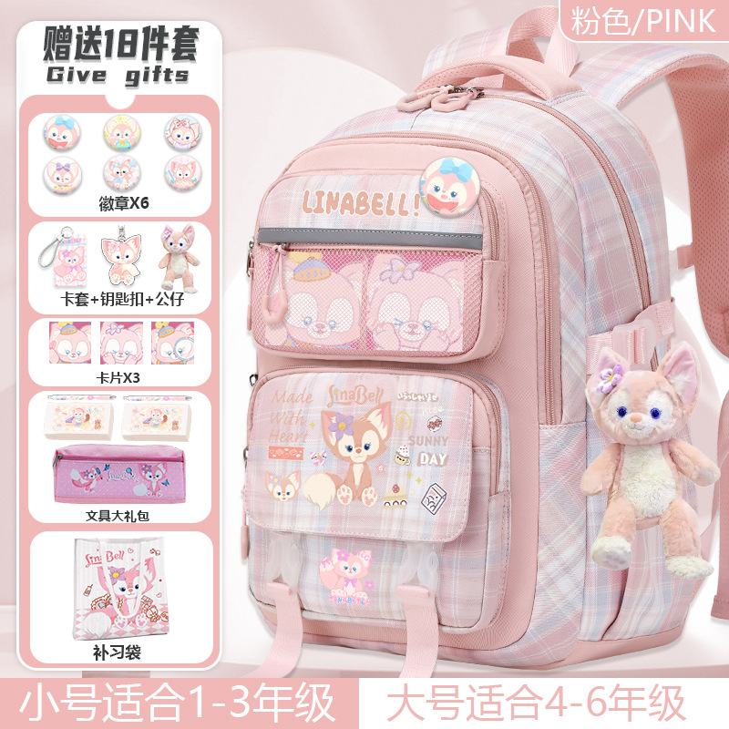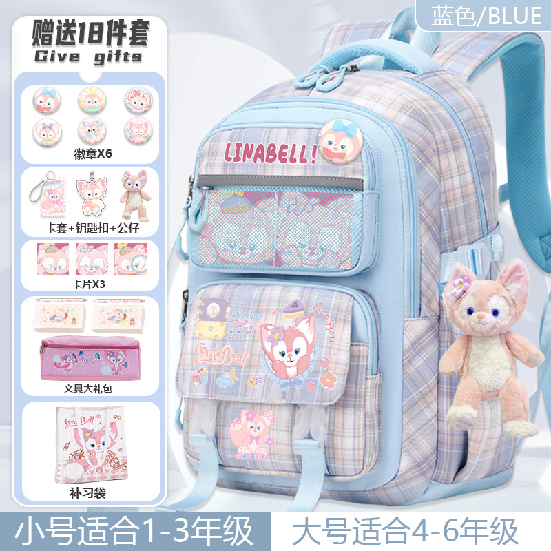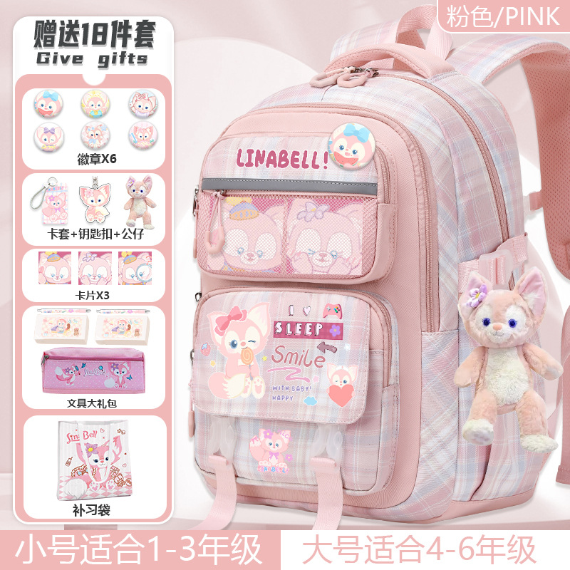 Lina Bell backpack for primary school students, girls, 1st to 6th grade, high-value appearance, large capacity, spine-protecting and weight-reducing double shoulder bag