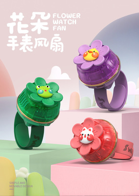 2024創意新款卡通可愛花朵手錶便攜式風扇usb充電學生戶外電扇廠