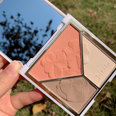 彩妝三色修容盤高光腮紅提亮啞光鼻影陰影眼影新手學生綜合盤跨境