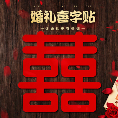 絨布不乾膠自粘喜字貼紙嫁妝無紡布結婚婚慶用品大全小喜字樓梯喜