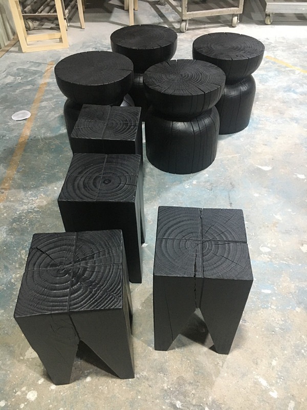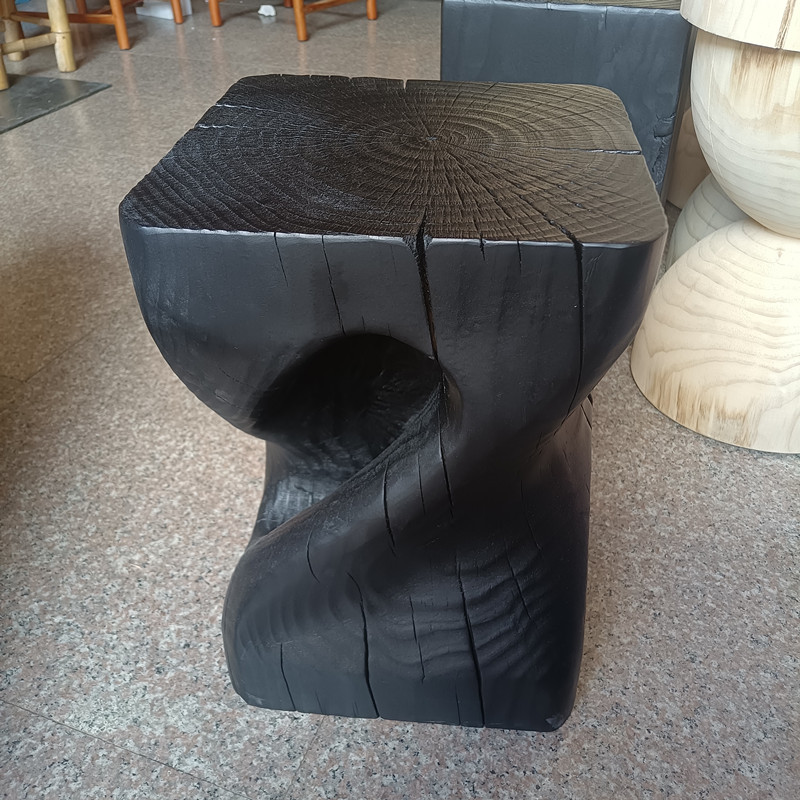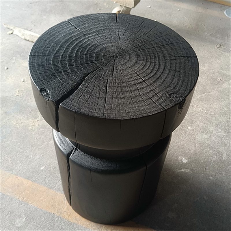 Wabi-sabi wind carbonized black log pier bed and breakfast ornaments European tree stump creative solid wood home low stool corner table