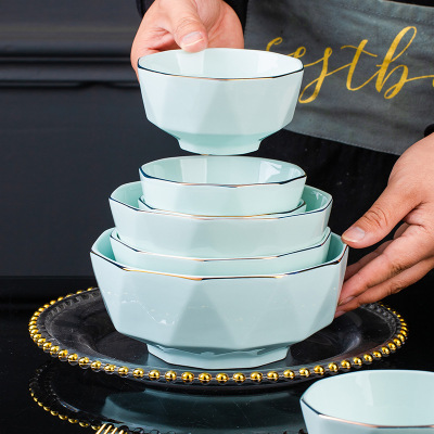景德鎮陶瓷餐具瓷碗米飯碗面碗大湯碗輕奢簡約手工描金鑽石碗批發