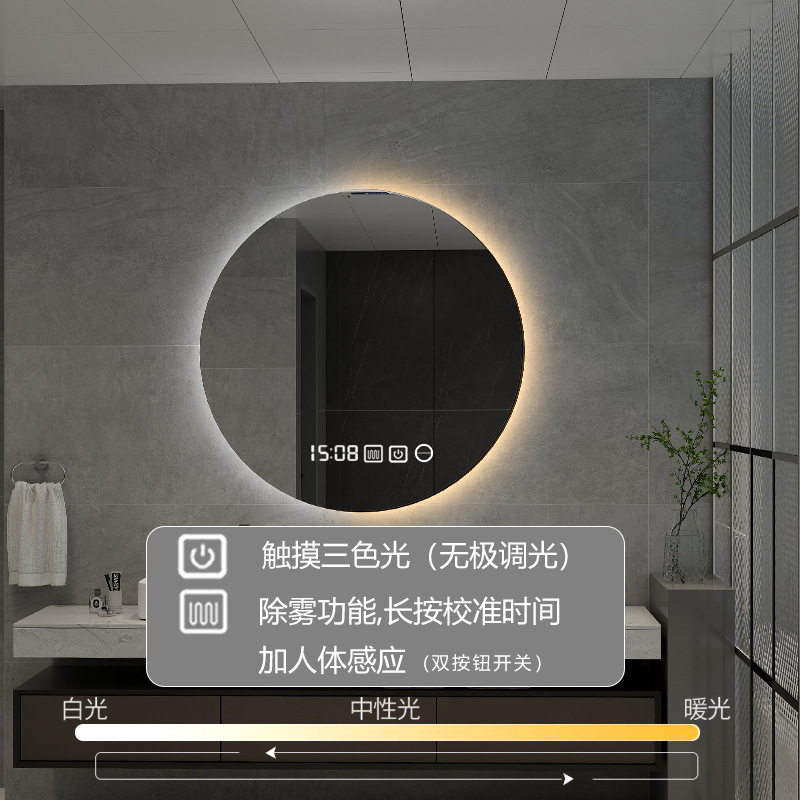 Round backlight + dual touch + warm light + defogging