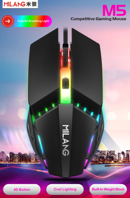 跨境米狼M5有線鼠標USB發光台式機筆記本電腦遊戲競技鼠標 亞馬遜
