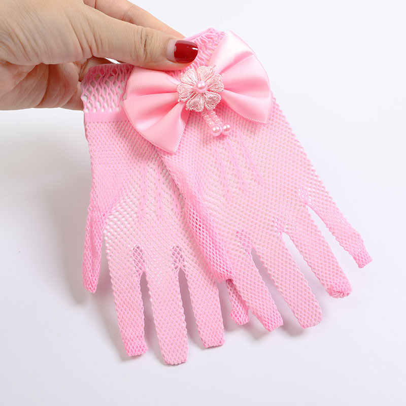 Children's princess dress mesh bow gloves stage performance wedding flower child pure white thin gloves wholesale