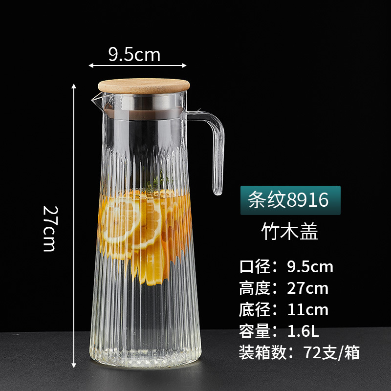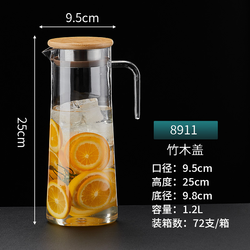 PC Cold Water Pitcher Fruit Tea Juice Filter Pitcher with Lid Wood Lid Steel Lid High Temperature Resistant Water Bottle for Logo Printing, Factory Wholesale