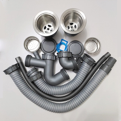 Manufacturer wholesale stainless steel double-slot sink sink drain pipe, kitchen sink water removal, anti-blocking and anti-odor