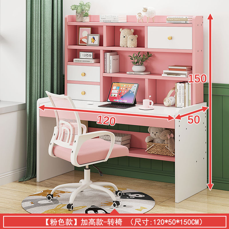 120cm粉色+書櫃+轉椅粉色