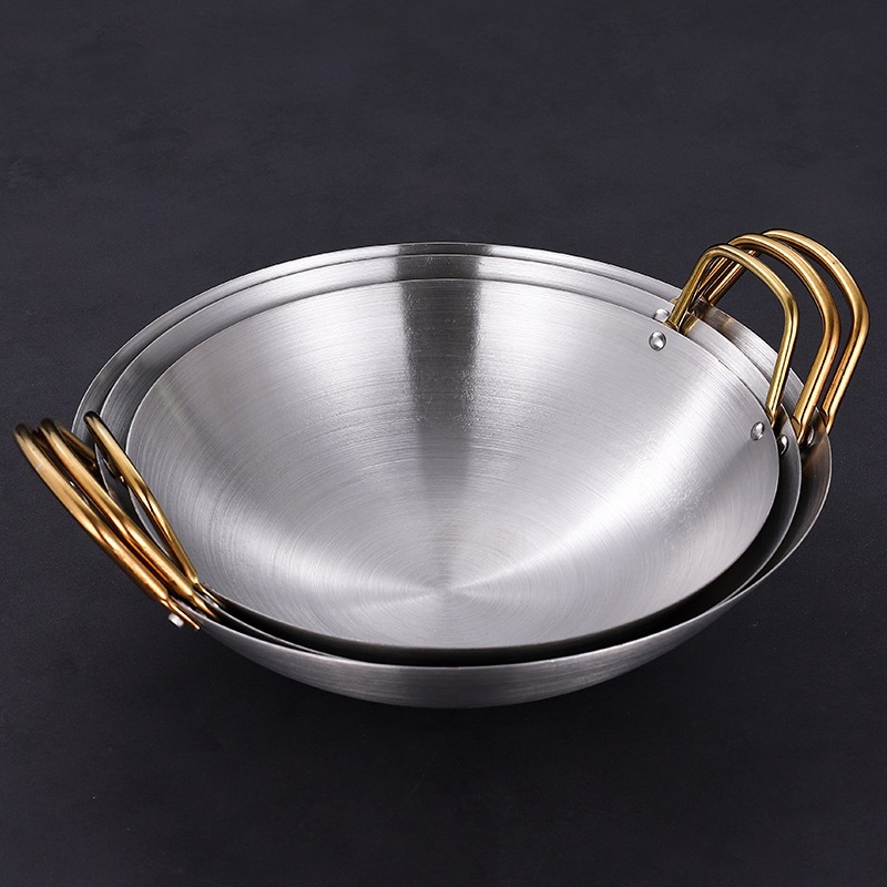 Stainless steel thickened dry pot pot gold ear barbecued hot pot alcohol stove hot pot basin round bottom fragrant hot pot basin