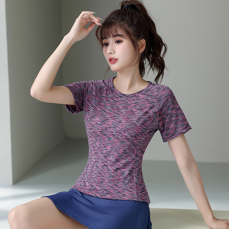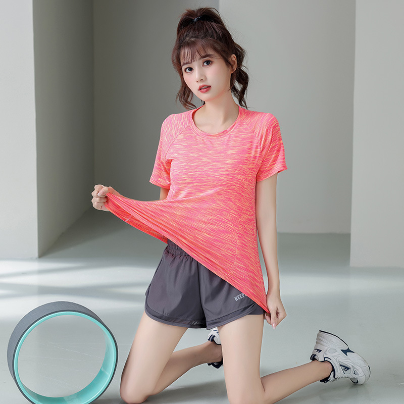 Elastic and breathable ultra-light quick-dry women's summer thin round neck short-sleeve T-shirt for fitness, running, and yoga.