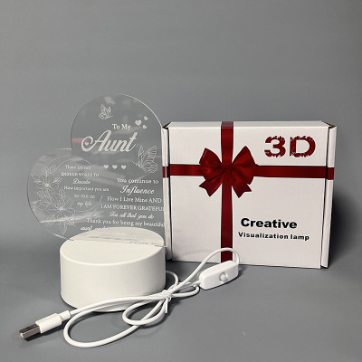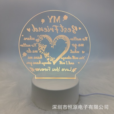 創意3d小夜燈母親節父親節情人節送姐妹女兒心形祝福語usb小檯燈