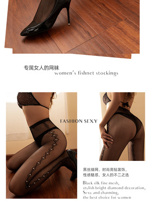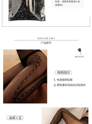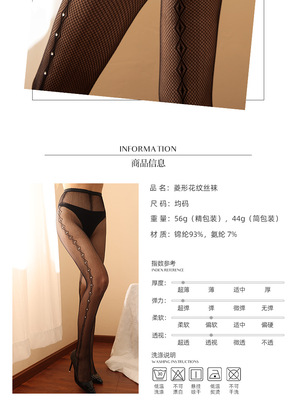 廠家性感絲襪女士內衣歐美跨境網眼襪側菱形長筒薄款黑色網襪